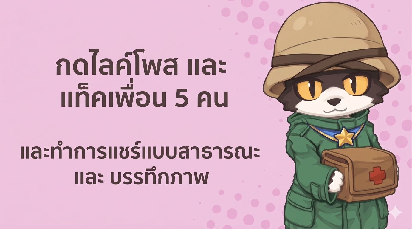 2) กดไลค์โพส และ แทคเพื่อน5คน และแชร์โพสต์กิจกรรมแบบสาธารณะ
